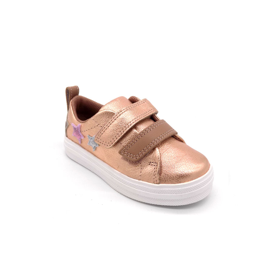 CLARKS sneaker για κορίτσι σε bronze απόχρωση. Κατασκευασμένο από οικολογικό δέρμα με μαλακό, ανατομικό πάτο και αντιολισθητική σόλα. Κλείνει με διπλό velcro.